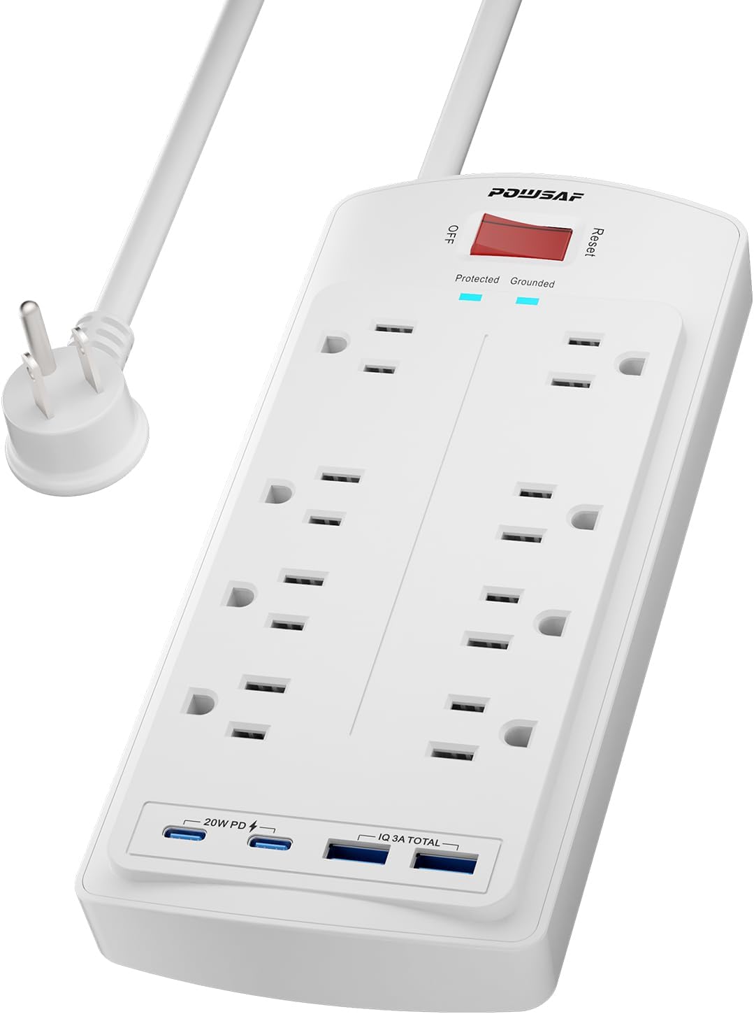 - DEWENWILS2-Pack 6-Outlet Power Strip Surge Protector White